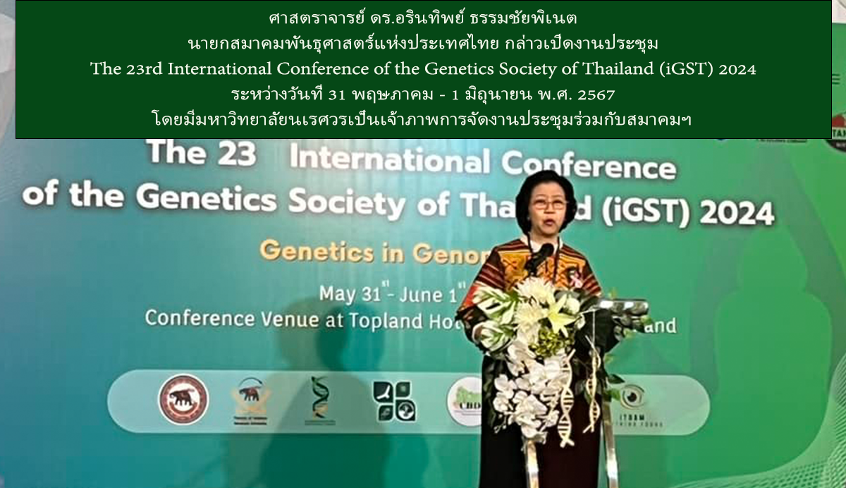 ศาสตราจารย์ ดร.อรินทิพย์ ธรรมชัยพิเนต นายกสมาคมพันธุศาสตร์แห่งประเทศไทย กล่าวเปิดงานประชุม The 23rd International Conference of the Genetics Society of Thailand (iGST) 2024 June 17, 2024 adminLeave a comment