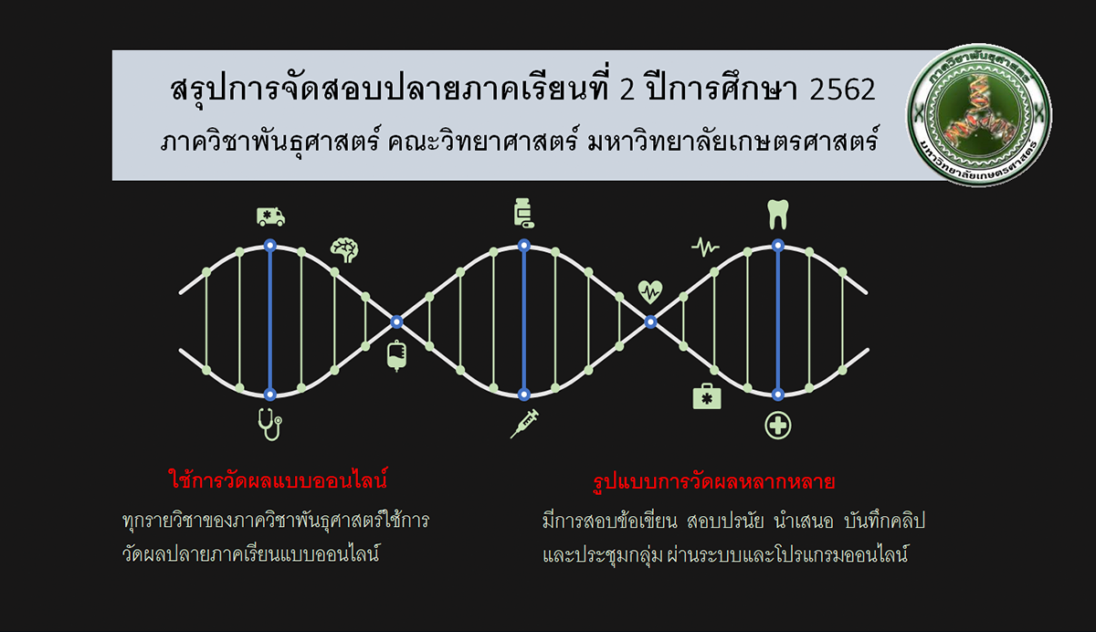สรุปการจัดสอบปลายภาคเรียนที่ 2 ปีการศึกษา 2562 ของภาควิชาพันธุศาสตร์ March 24, 2020 admin อ่านสรุปรูปแบบการจัดสอบปลายภาคเรียนที่ 2 ปีการศึกษา 2562 ของภาควิชาพันธุศาสตร์ ได้ ที่นี่