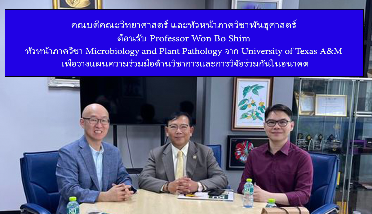 คณบดีคณะวิทยาศาสตร์ และหัวหน้าภาควิชาพันธุศาสตร์ ต้อนรับ Professor Won Bo Shim หัวหน้าภาควิชา Microbiology and Plant Pathology จาก University of Texas A&M June 17, 2024 adminLeave a comment
